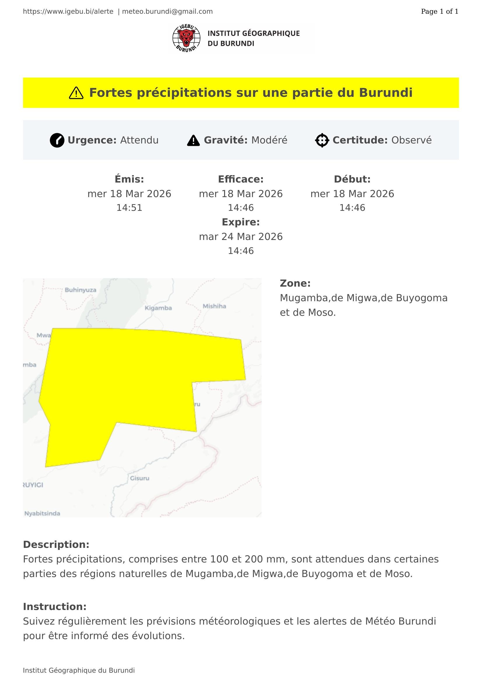 Suivez régulièrement les prévisions météorologiques et les alertes de Météo Burundi pour être informé des évolutions.