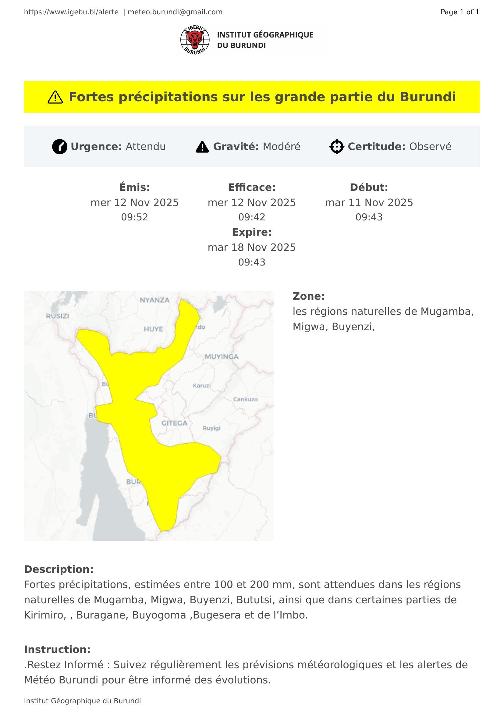 .Restez Informé : Suivez régulièrement les prévisions météorologiques et les alertes de Météo Burundi pour être informé des évolutions.