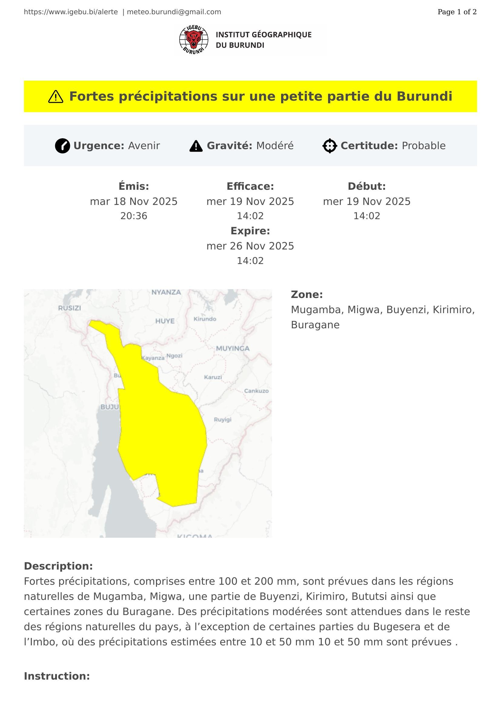 Restez Informé : Suivez régulièrement les prévisions météorologiques et les alertes de Météo Burundi pour être informé des évolutions.