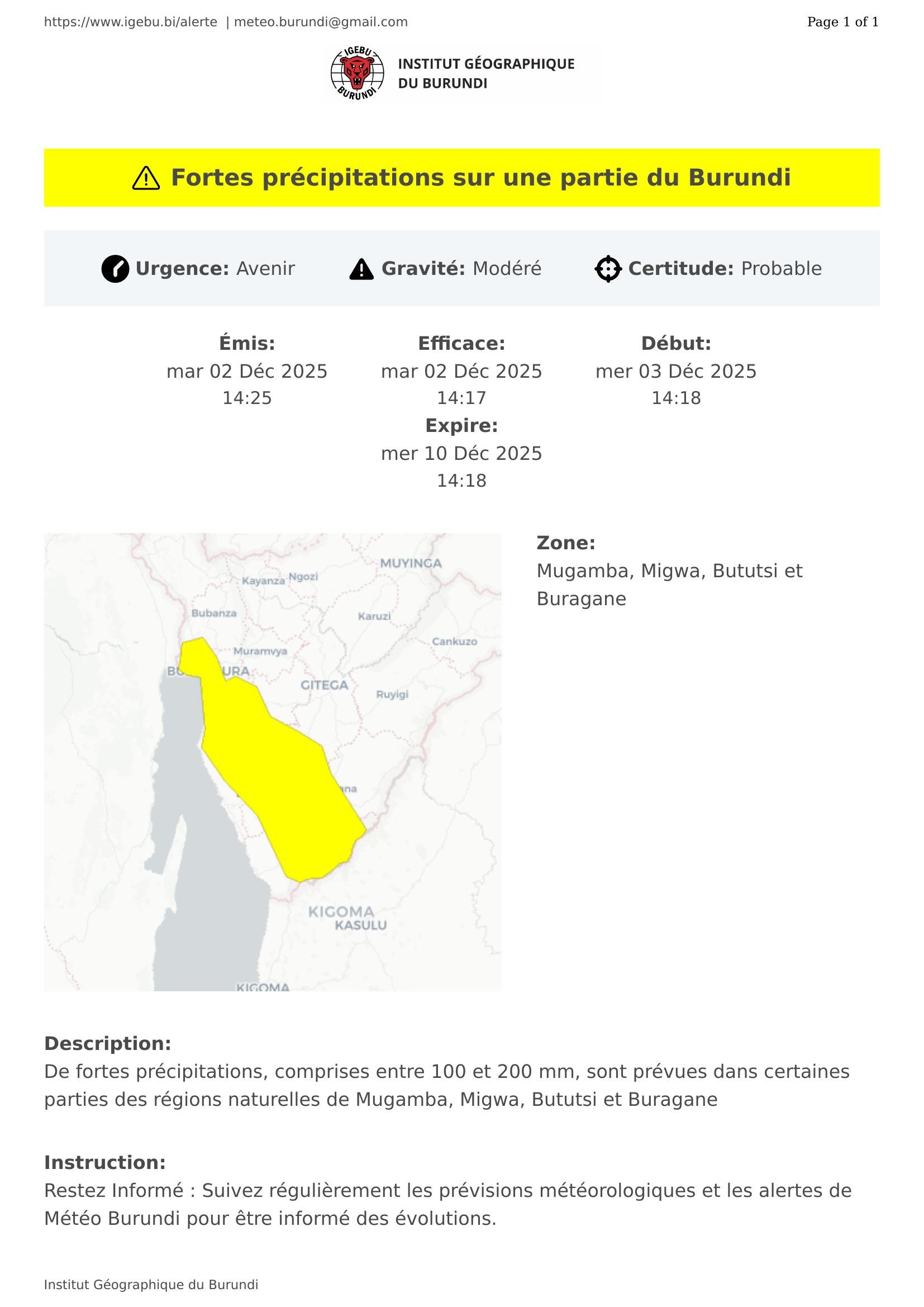 Restez Informé : Suivez régulièrement les prévisions météorologiques et les alertes de Météo Burundi pour être informé des évolutions.