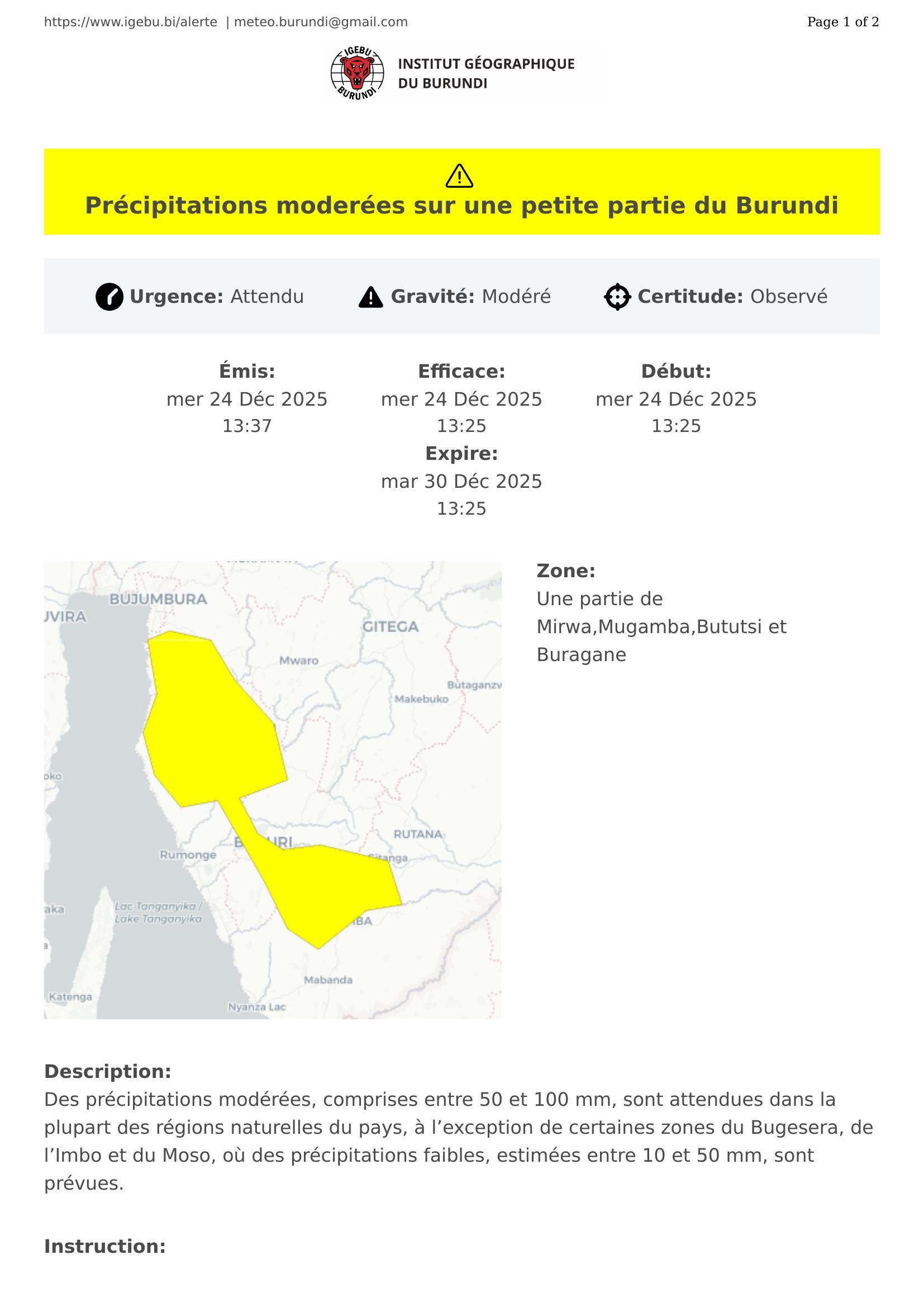 Restez Informé : Suivez régulièrement les prévisions météorologiques et les alertes de Météo Burundi pour être informé des évolutions.