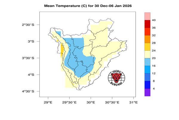 - Des précipitations modérées, comprises entre 50 et 100 mm, sont attendues dans le reste du pays, à l’exception de certaines zones du Bugesera, de l’Imbo et du Migwa, où des précipitations faibles, estimées entre 10 et 30 mm, sont prévues.