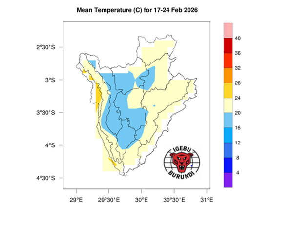 - Précipitations modérées, comprises entre 50 et 100 mm, sont attendues dans le reste du pays, à l’exception de certaines zones de l’Imbo et de certaines parties du Moso, où des précipitations faibles, comprises entre 10 et 30 mm, sont prévues.