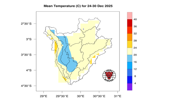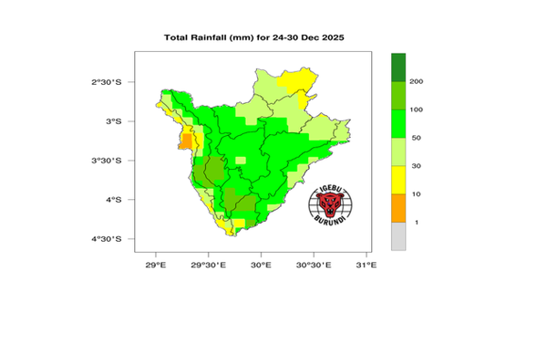 - Des précipitations modérées, comprises entre 50 et 100 mm, sont attendues dans la plupart des régions naturelles du pays, à l’exception de certaines zones du Bugesera, de l’Imbo et du Moso, où des précipitations faibles, estimées entre 10 et 50 mm, sont prévues.